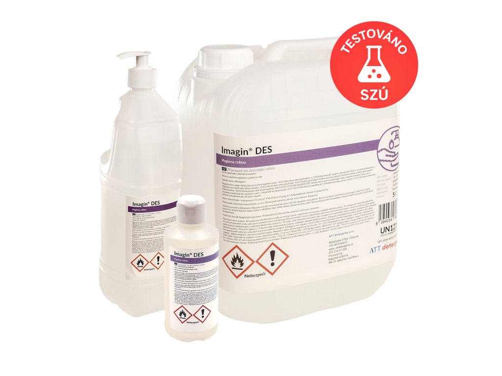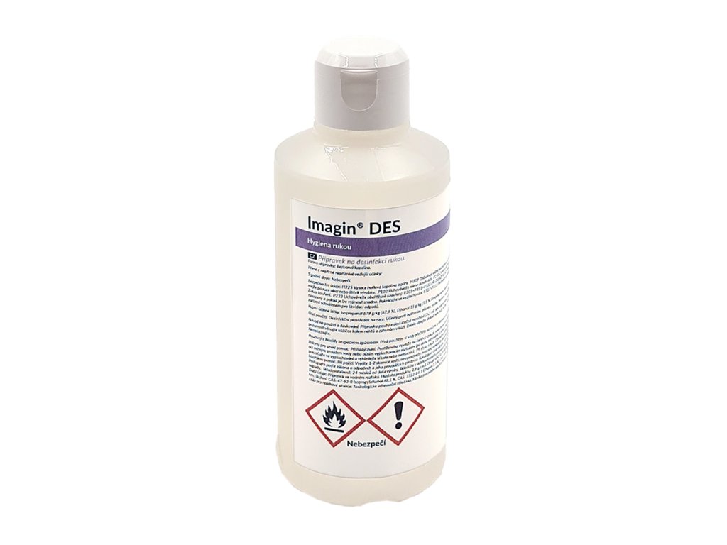 Imagin® DES je dezinfekční přípravek na ruce s třemi účinnými látkami, který poskytuje ochranu proti baktériím, plísním a virům. Obsahuje více než 60 % isopropanolu a díky přidanému glycerinu je šetrný k pokožce, nevysušuje ruce a zajišťuje hloubkovou dezinfekci. Je slabě parfémovaný a nezanechává rezidua, což jej činí vhodným pro použití v potravinářských provozech.