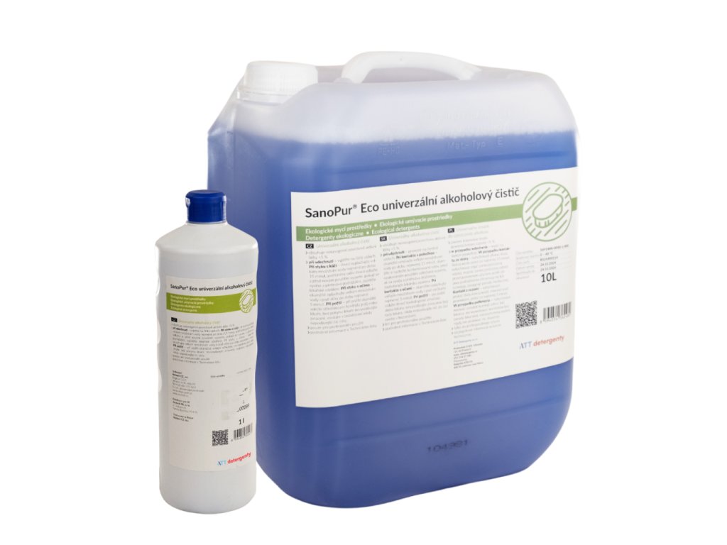 SanoPur® Eco univerzální alkoholový čistič je ideální šetrný rychločistič na všechny omyvatelné povrchy, včetně skla, plastu a kuchyňského nábytku.