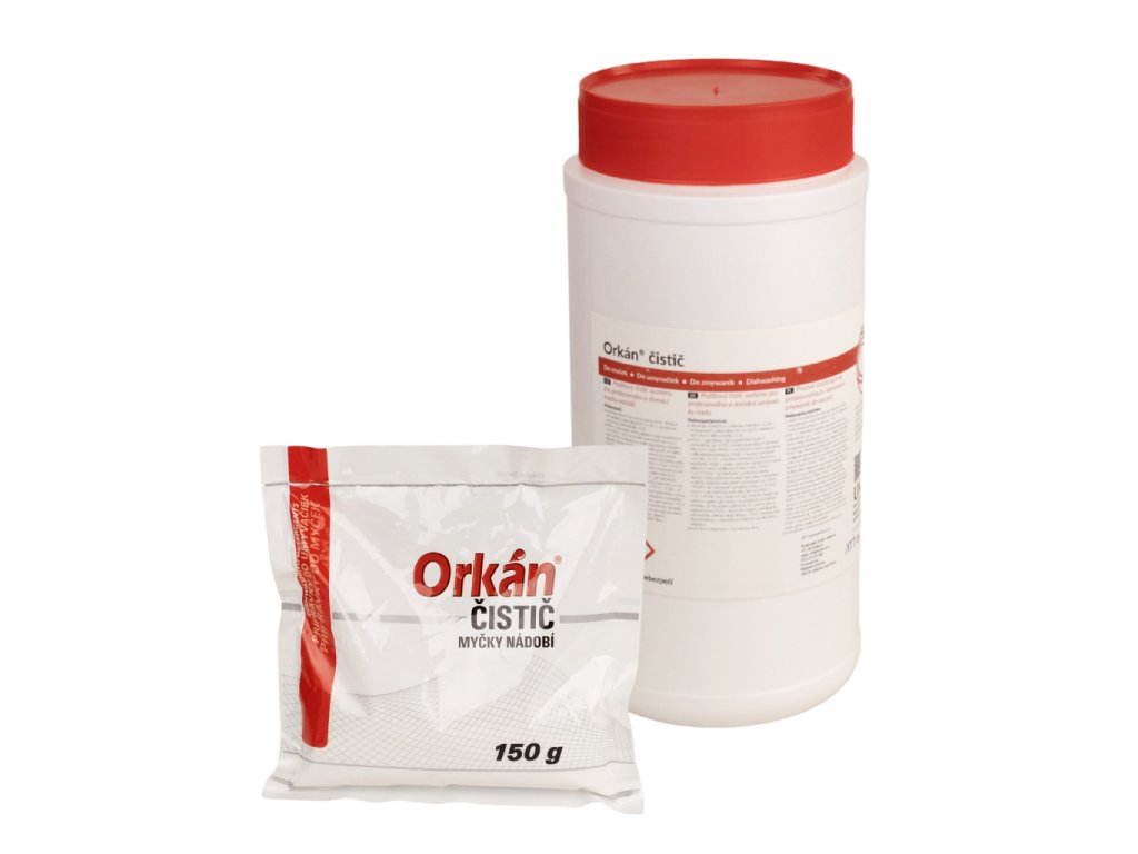Orkán® čistič je vysoce účinný práškový čisticí prostředek na bázi aktivního chlóru, navržený pro čištění profesionálních i domácích myček nádobí. Díky svému složení spolehlivě odstraňuje mastnoty a usazeniny z celého mycího systému, včetně těžko přístupných míst, a zajišťuje sanitační účinek.
