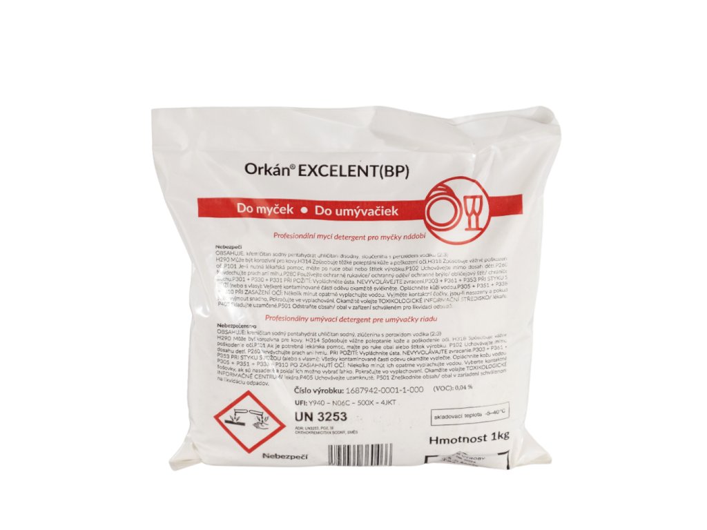Orkán® EXCELENT (BP) je vysoce koncentrovaný univerzální práškový mycí detergent do myčky nádobí, který neobsahuje chlór ani fosfáty, a díky svému složení je šetrný k životnímu prostředí.