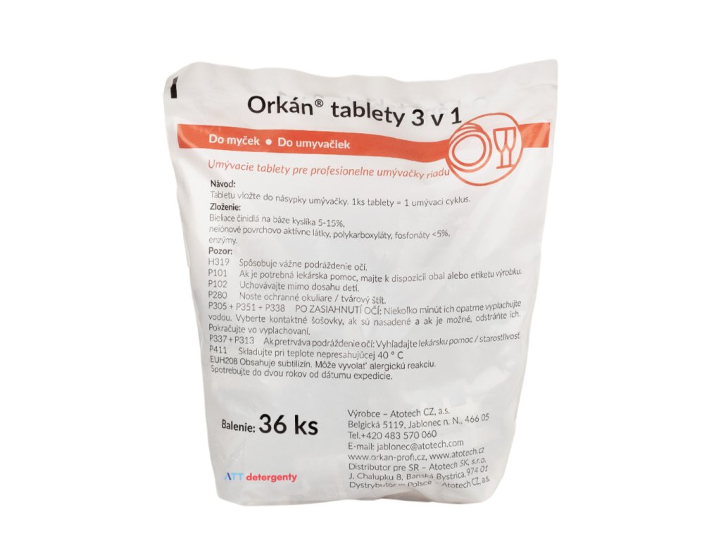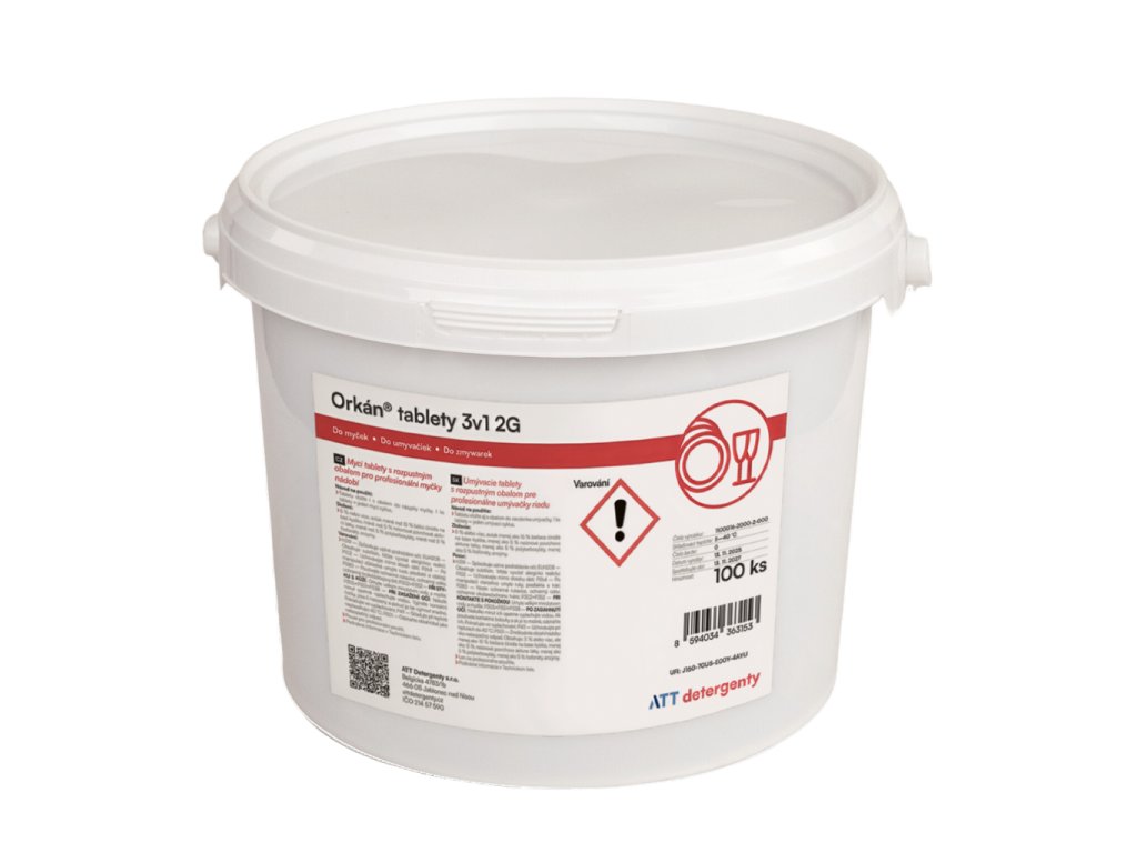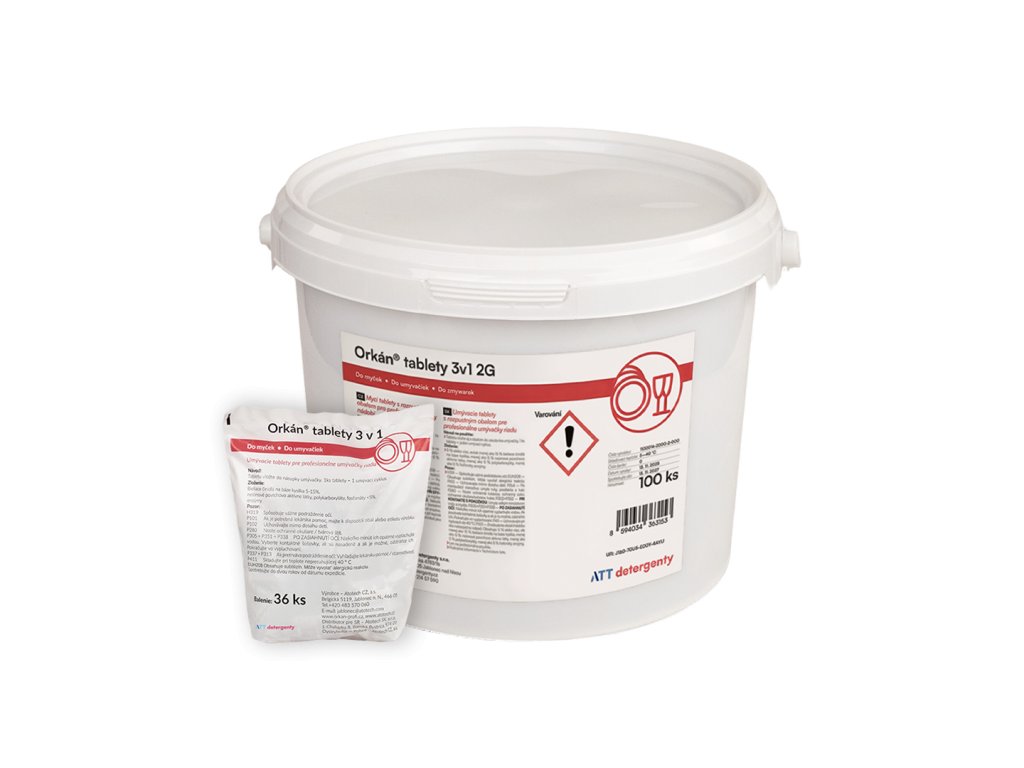 Orkán® mycí tablety 3v1 2G jsou třífázové mycí tablety s rozpustným obalem, určené pro účinné mytí nádobí v malých a domácích myčkách. Moderní složení podporuje snadné odstranění nečistot a běžných usazenin, takže pomáhá dosahovat stabilních výsledků mytí.